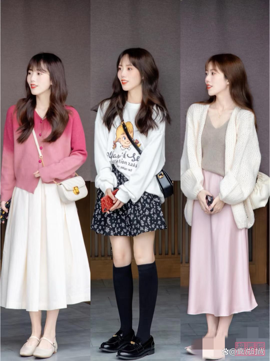 百褶短裙配长卫衣,时髦又不压个子,也特别适合小个子的女生来穿。