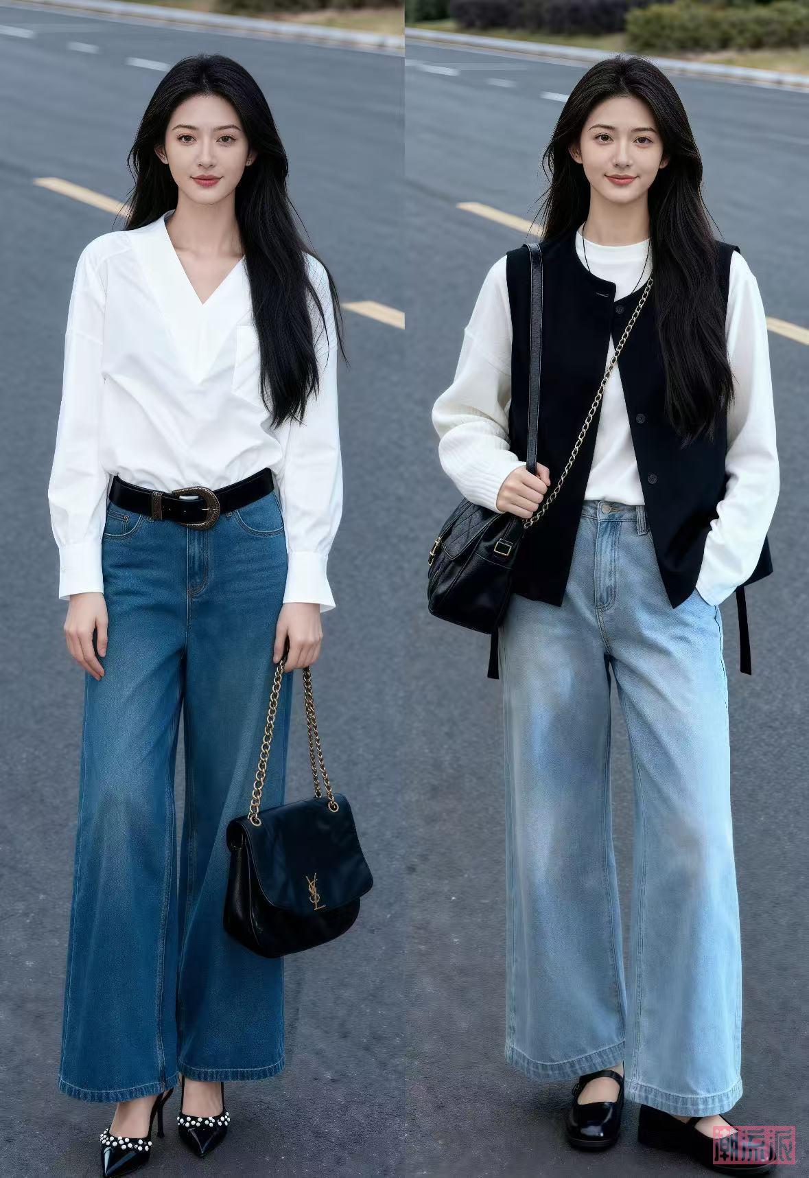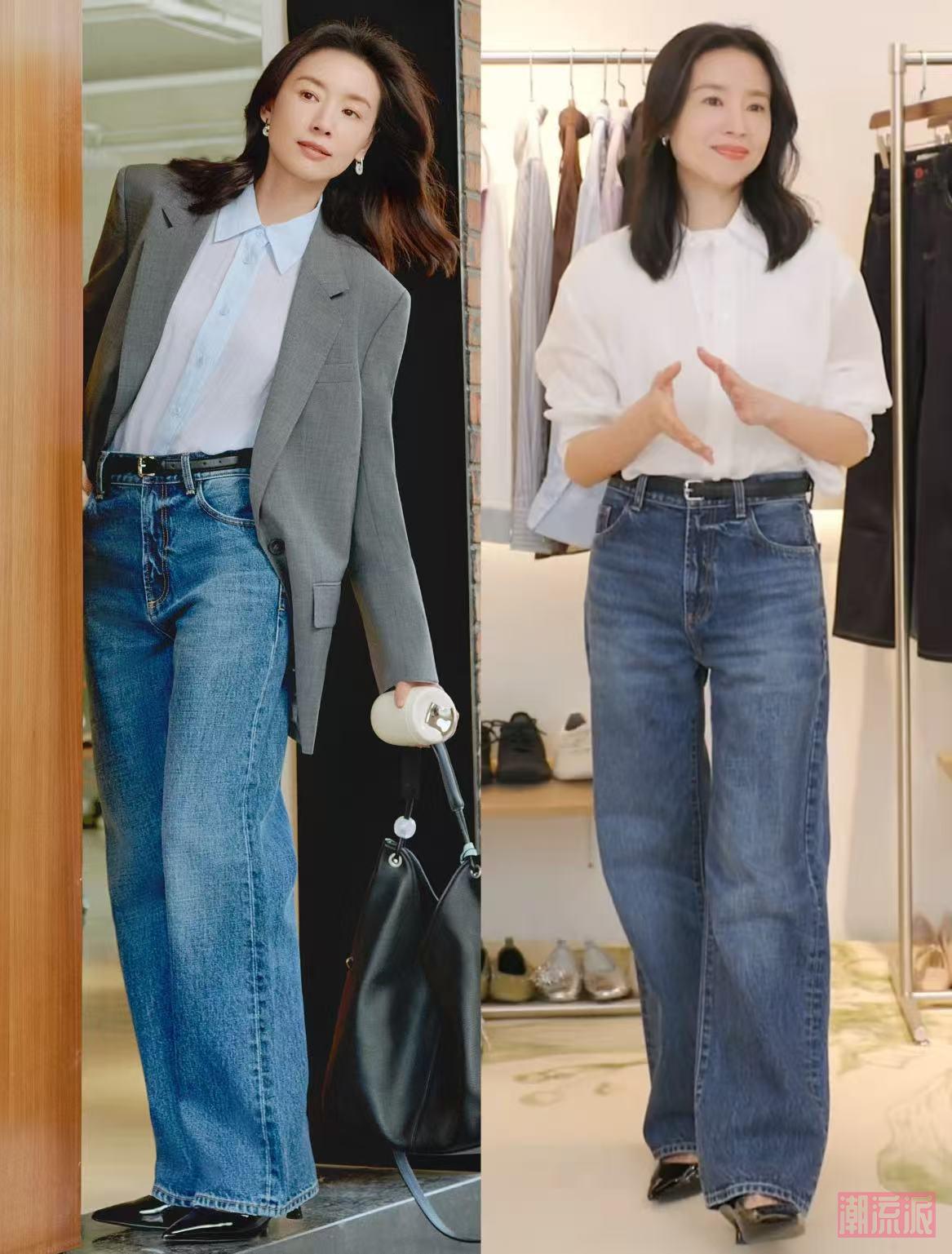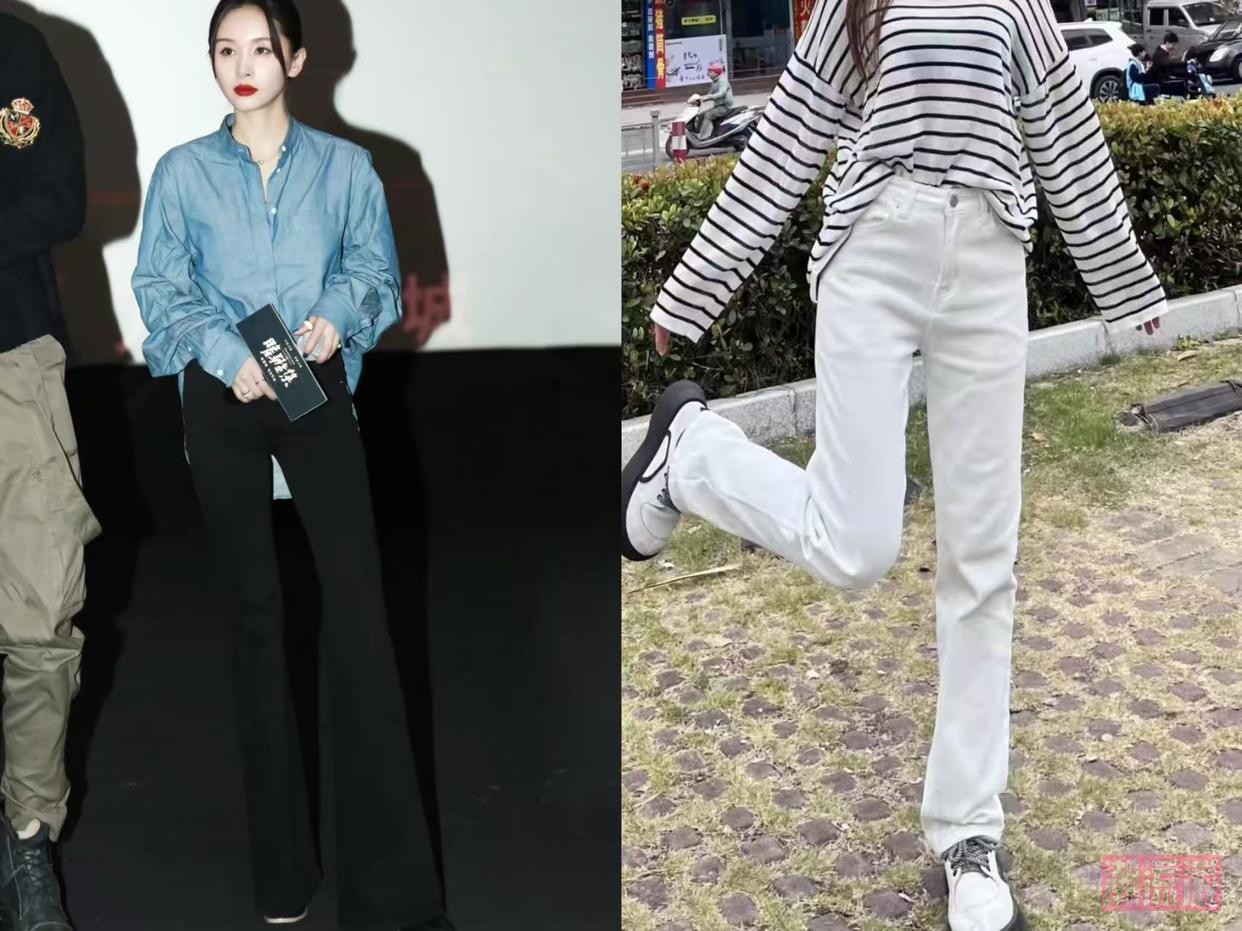 高腰牛仔裤:选腰头在肚脐以上3指的款式,直筒或微喇版型,裤腿稍微宽松能藏肉,选择这些高腰直筒牛仔裤,谁穿谁知道显瘦!