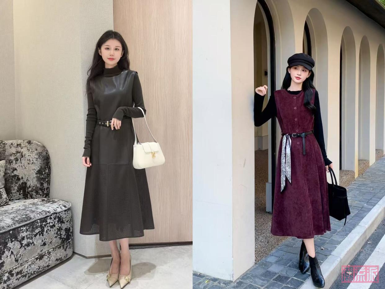 连衣裙外系腰带:选细腰带(2-3cm宽),系在肚脐上方2指的位置,比如“酒红色长裙+黑色细腰带+黑色短靴”,腰线明确,视觉上腿长直接加10cm。