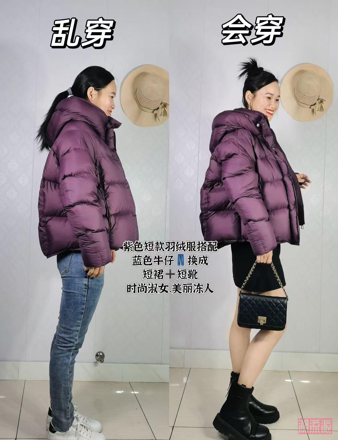 短款羽绒服:博主选短款,搭配短裤+马丁靴”,保暖又显高,155cm穿也不会压个子。