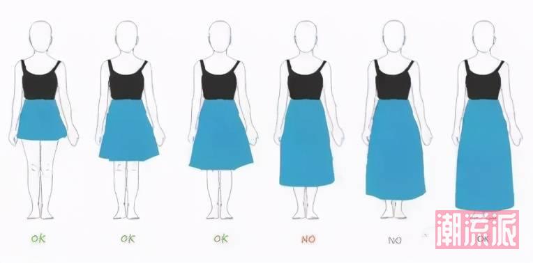 于小个子而言,裙装长度在小腿中部左右的要尽量避开,因为这些长度的裙装让视觉分割为“二八”,与完整腿长相比,更为显矮。