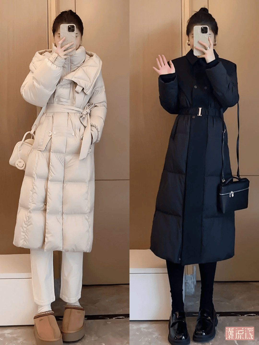 深色系的长款羽绒服以其低调而沉稳的气质,成为许多人的首选。它们不仅耐脏易打理,还能在视觉上起到收缩身形的作用,让穿着者显得更加修长。而腰带的加入,则进一步强调了身材的曲线美,即便是厚重的羽绒服,也能穿出不凡的时尚感。