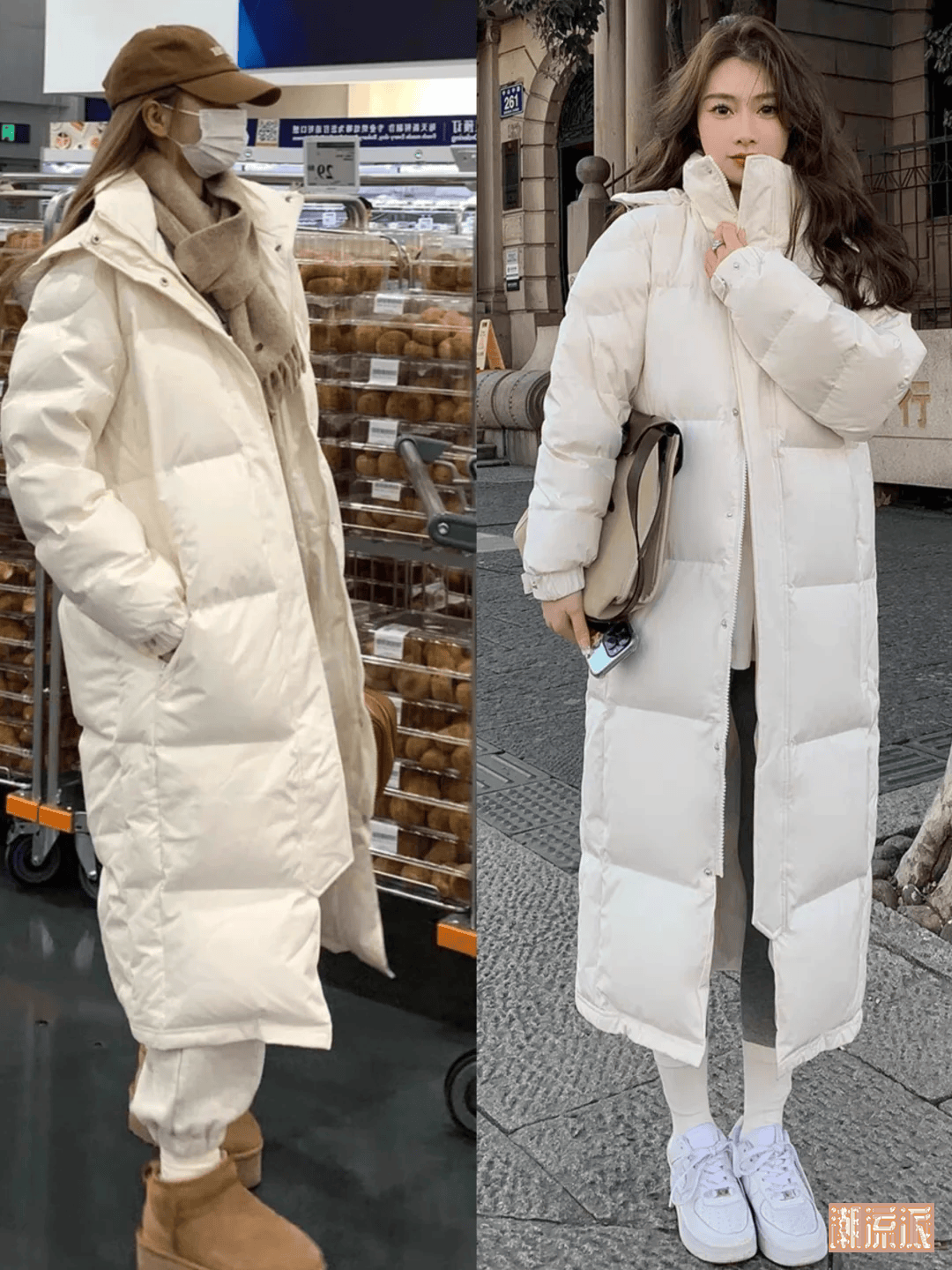 当然,长款羽绒服并非只能局限于深色系。浅色系的长款羽绒服,以其清新脱俗的气质,同样能够成为冬日里的一道亮丽风景线。搭配一双简约的白色运动鞋,或是手提一款小巧的毛绒包包,都能让整体造型更加生动有趣,展现出独特的个性魅力。