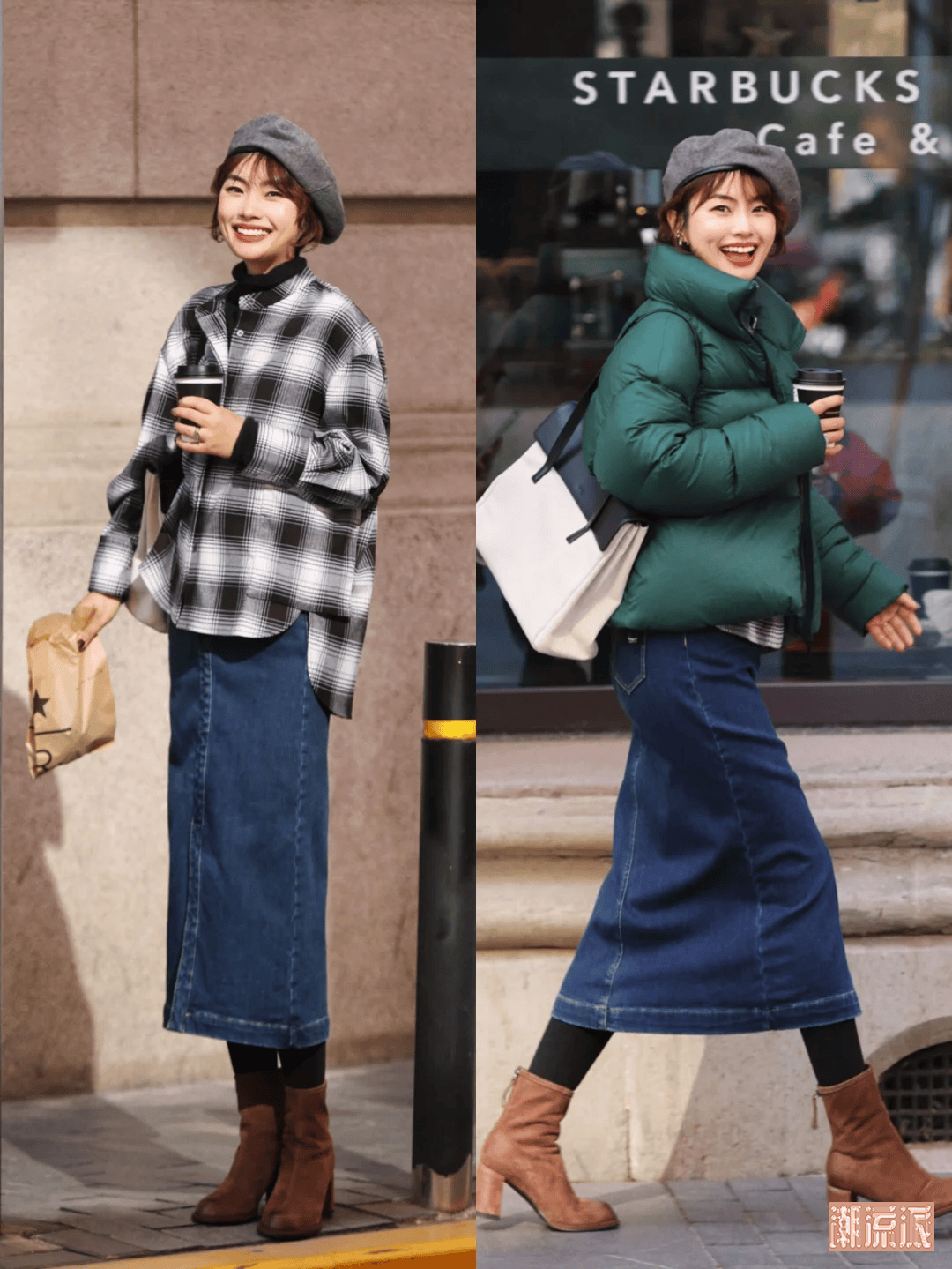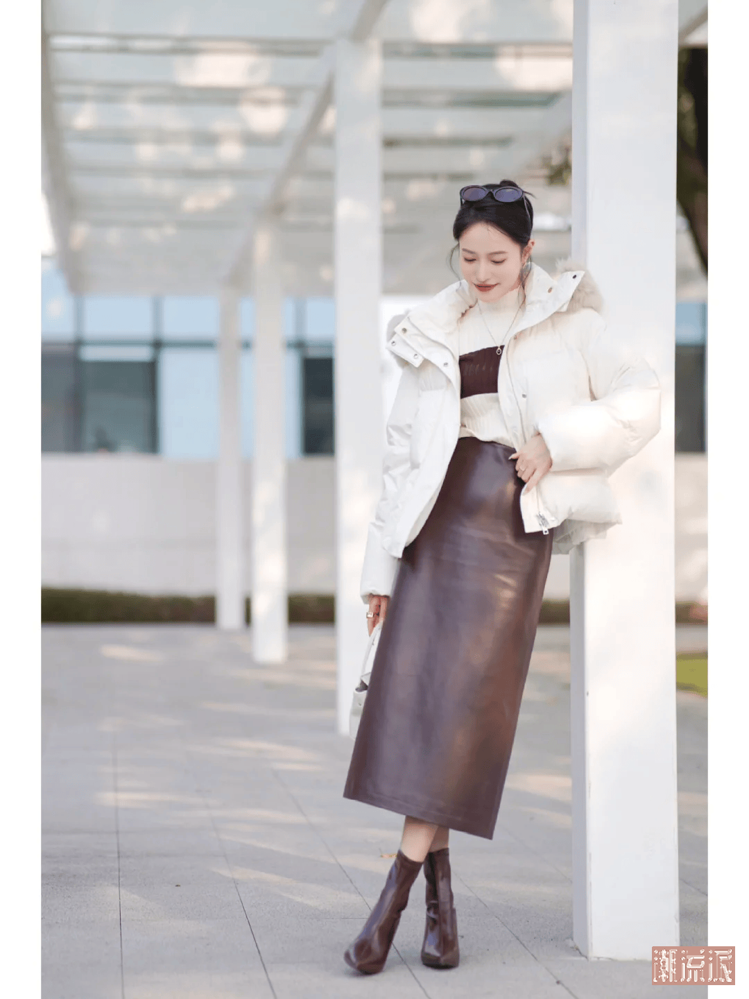 特别是当短款羽绒服与包臀直筒裙相遇时,更是将女性的曲线美展现得恰到好处。这种搭配不仅能够修饰身材比例,还能让穿着者在走动间散发出迷人的气质。